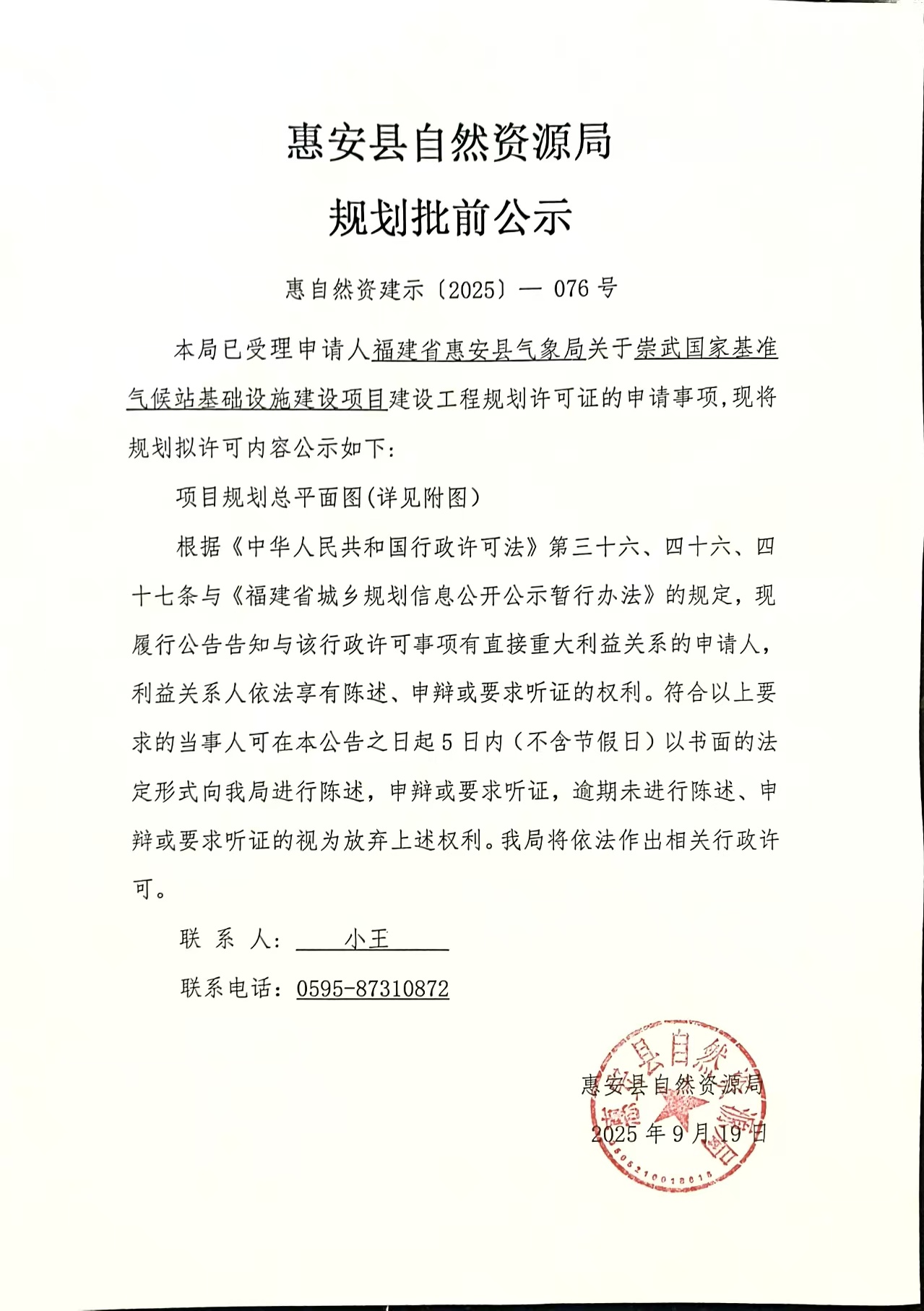 崇武国家基准气候站基础设施建设项目建设工程规划许可证批前公示