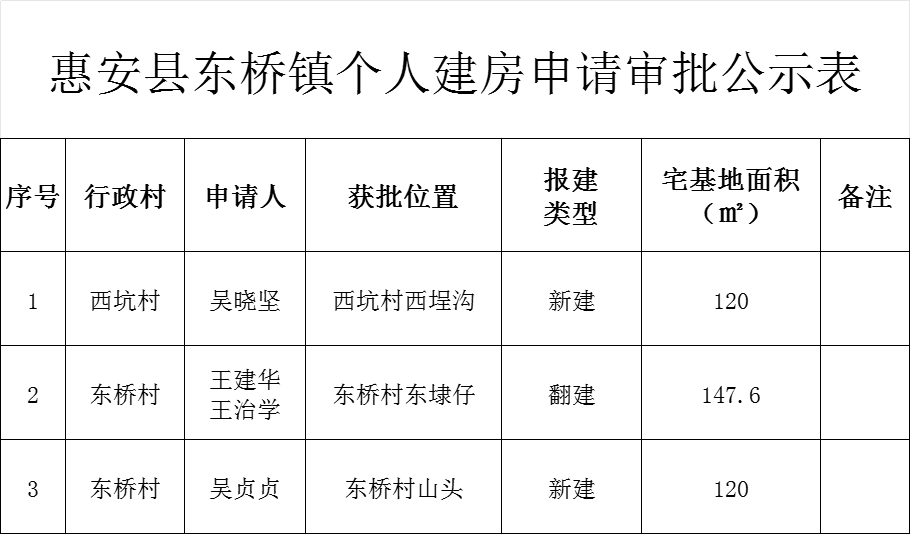 根据《惠安县规范农村宅基地审批建设管理规定》(惠政办〔2020〕60号)《惠安县进一步加强农村宅基地和住房建设管理规定》(惠政办规〔2023〕2号)文件规范,按照“农户申请、村民小组讨论、村级审查、窗口受理、部门联审、镇级审批”程序,现将2025年11月(第三批次)上报镇联审联办审查名单进行公示,如对以下公示名单存在异议,请于5个工作日内,持相关材料向相关行政村及镇农村宅基地联审联办领导小组办公室反映(联系电话:0595-87816001)。