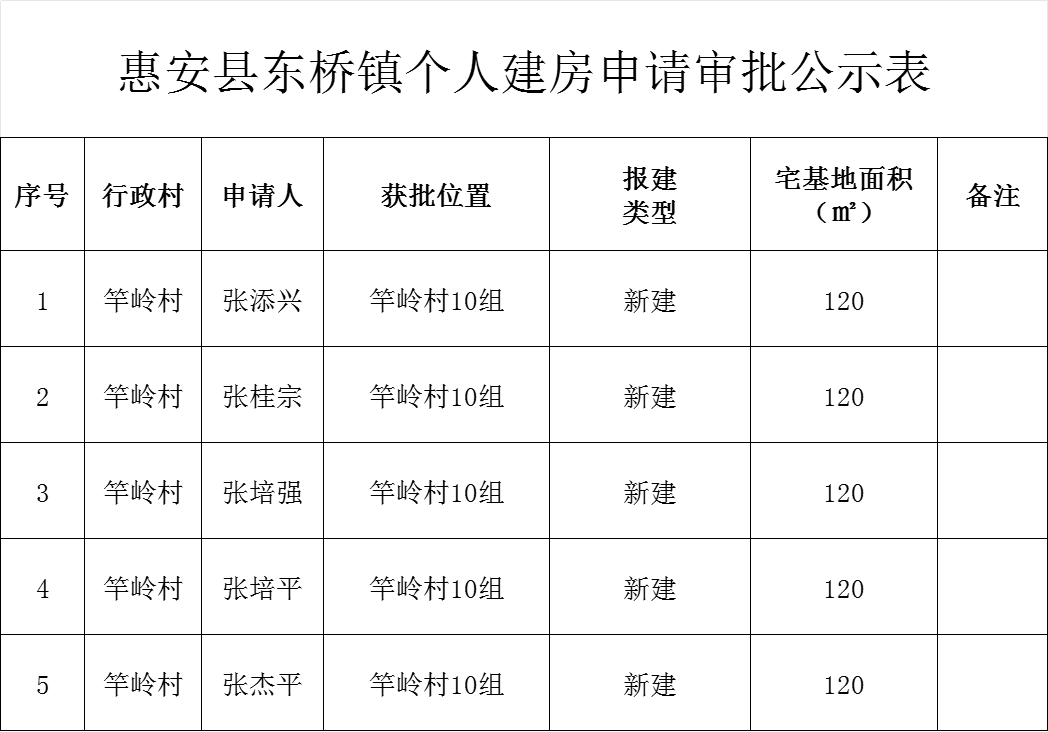 根据《惠安县规范农村宅基地审批建设管理规定》(惠政办〔2020〕60号)《惠安县进一步加强农村宅基地和住房建设管理规定》(惠政办规〔2023〕2号)文件规范,按照“农户申请、村民小组讨论、村级审查、窗口受理、部门联审、镇级审批”程序,现将2025年11月(第四批次)上报镇联审联办审查名单进行公示,如对以下公示名单存在异议,请于5个工作日内,持相关材料向相关行政村及镇农村宅基地联审联办领导小组办公室反映(联系电话:0595-87816001)。