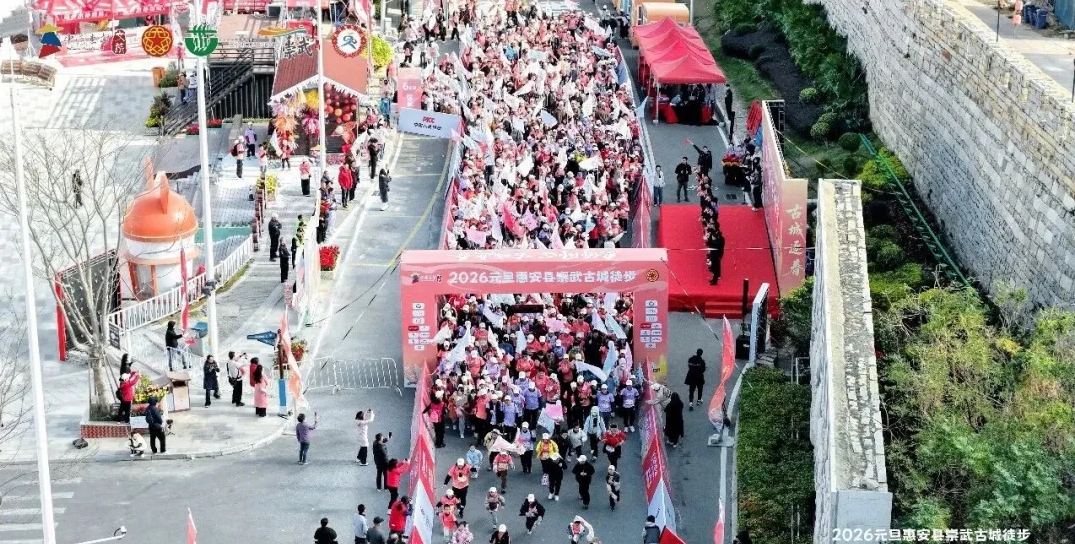 崇武古城举办“2026元旦惠安县崇武古城徒步”主题活动,带来全民健身、惠女精神传承的氛围场景,吸引近千名游客报名参与,有效带动景区客流同比增长18.5%,旅游收入同比提升19.3%。