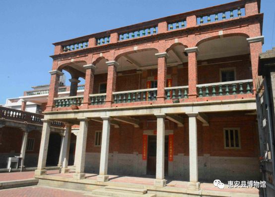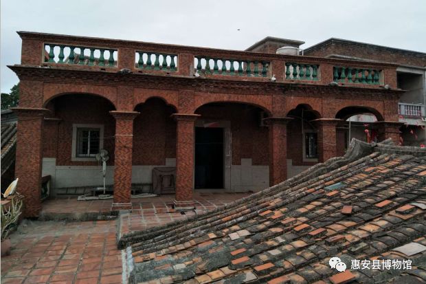 1950年,何瓦水的洋楼建成,这座房子保留了闽南红砖建筑风格,一楼门楣上写着丁号“庐江衍派”,但从骑楼式外廊和双层建筑形式中可以看出这是归国华侨建的洋楼。其他三人建的房子,就吸收了更多南洋风格元素。