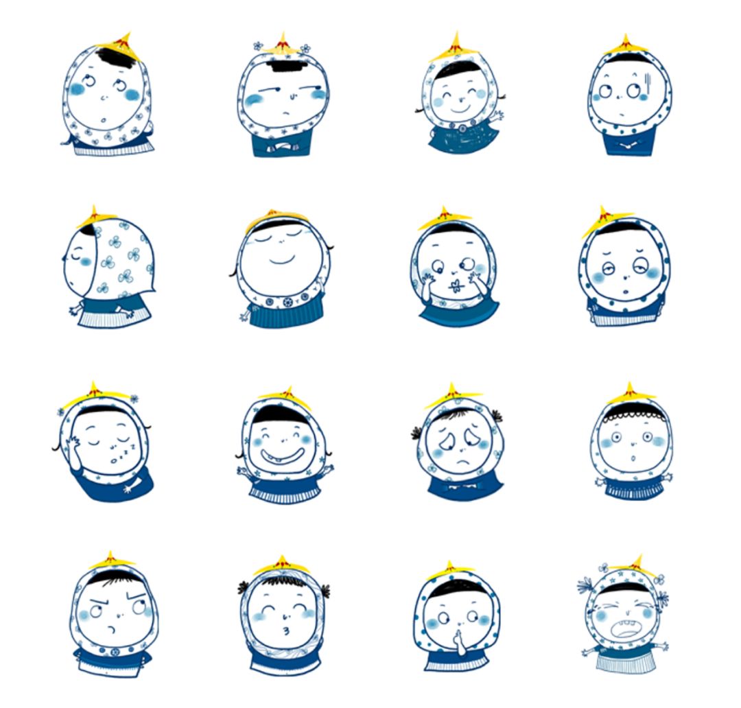 这套卡通形象由6个惠安女玩偶组成,被称为“惠安女六姐妹”。她们的风格与服饰相近,但表情与形态各异。