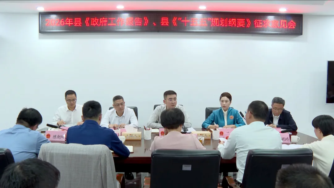 会议简要介绍了2026年县《政府工作报告》及县《“十五五”规划纲要》相关情况。随后,听取了与会人员的意见和建议。