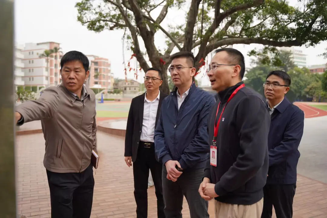 在惠安三中,黄育奇一行仔细对照项目规划设计图纸,认真听取学校及相关部门关于项目前期筹备、规划思路的情况介绍,并实地察看了学校现有教学设施、场地布局、师生活动空间等情况。随后召开专题会议,进一步听取项目整体布局、功能分区、配套设施规划等汇报,以及推进过程中面临的困难与诉求。与会人员围绕项目用地保障、资金测算、长远适配性等核心问题作了交流发言。