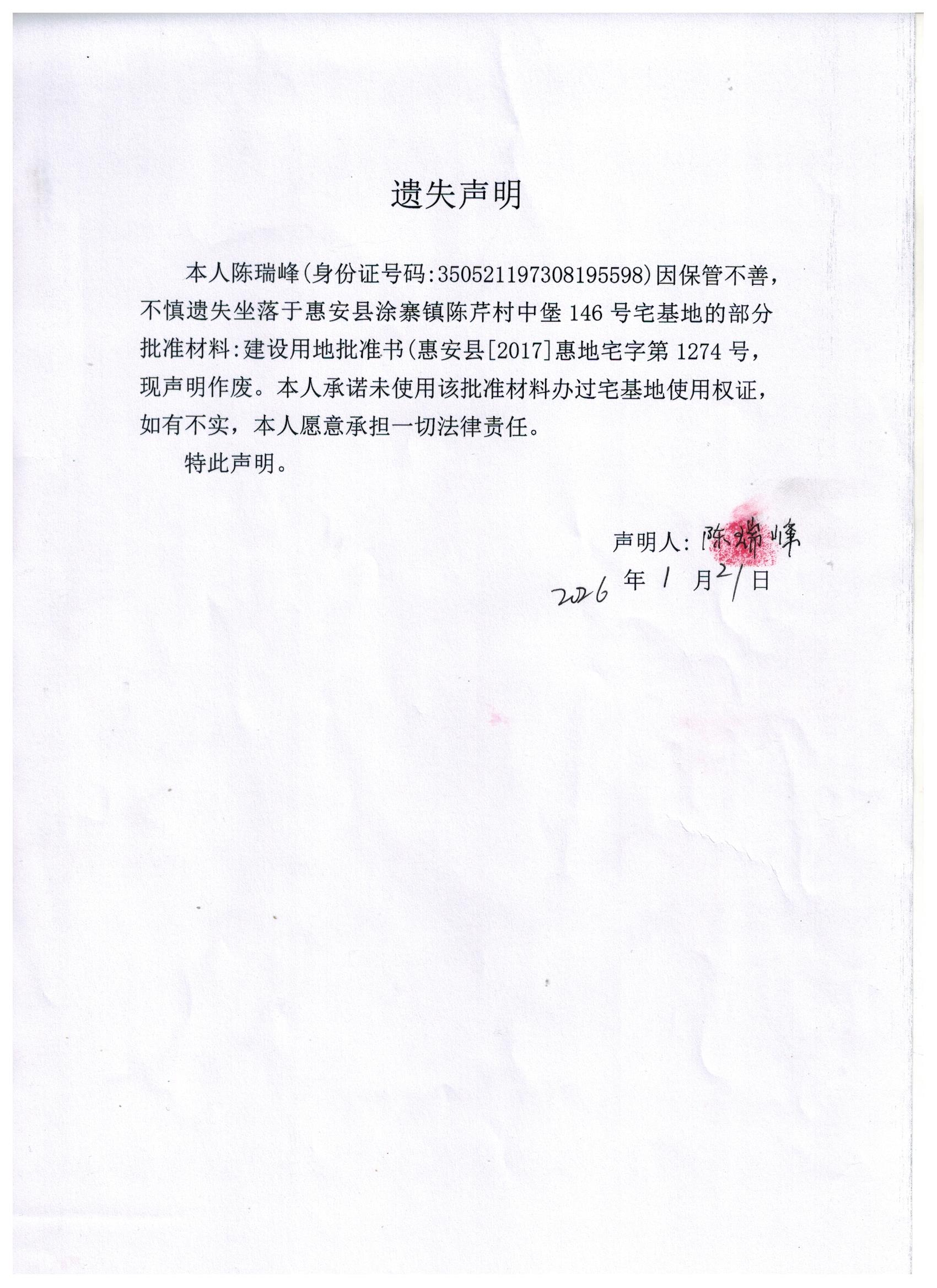 不动产权证书遗失声明