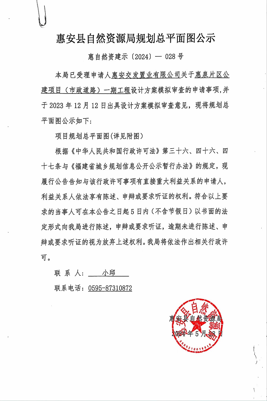 惠泉片区公建项目(市政道路)一期工程规划总平面图公示