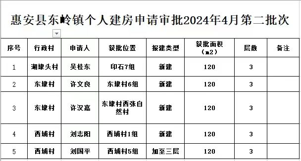 【宅基地使用情况审核】东岭镇2024年4月个人建房审批情况表