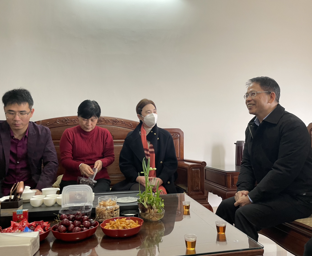 在美国杜克大学终身教授、厦门大学特聘教授柳清伙家中,许贞丽与他亲切交流,详细询问了他的家庭生活、工作情况、回国发展现状等情况,认真听取他对惠安发展的意见建议,并送去党和政府的温暖以及新春的祝福。