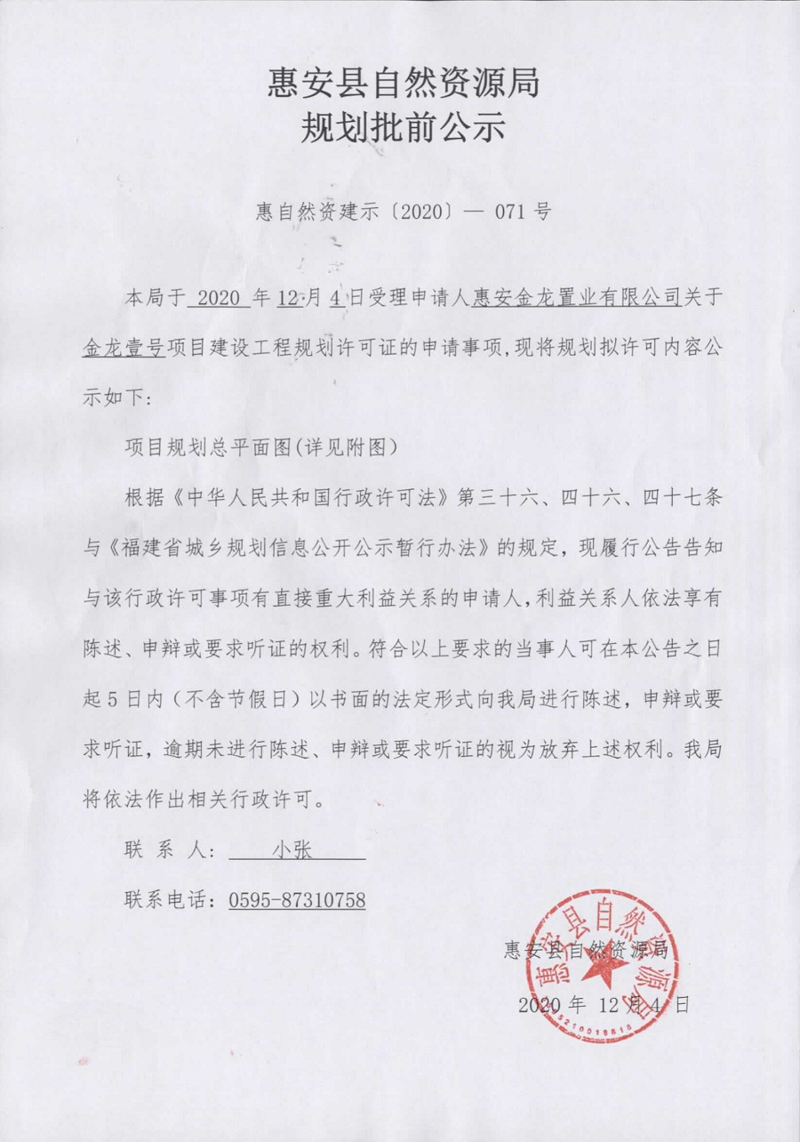 金龙壹号项目建设工程规划许可证批前公示