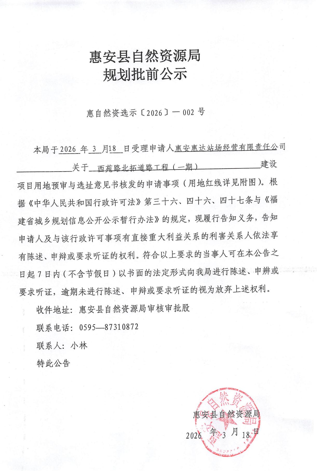 西苑路北拓道路工程(一期)建设项目用地预审与选址意见书规划批前公示