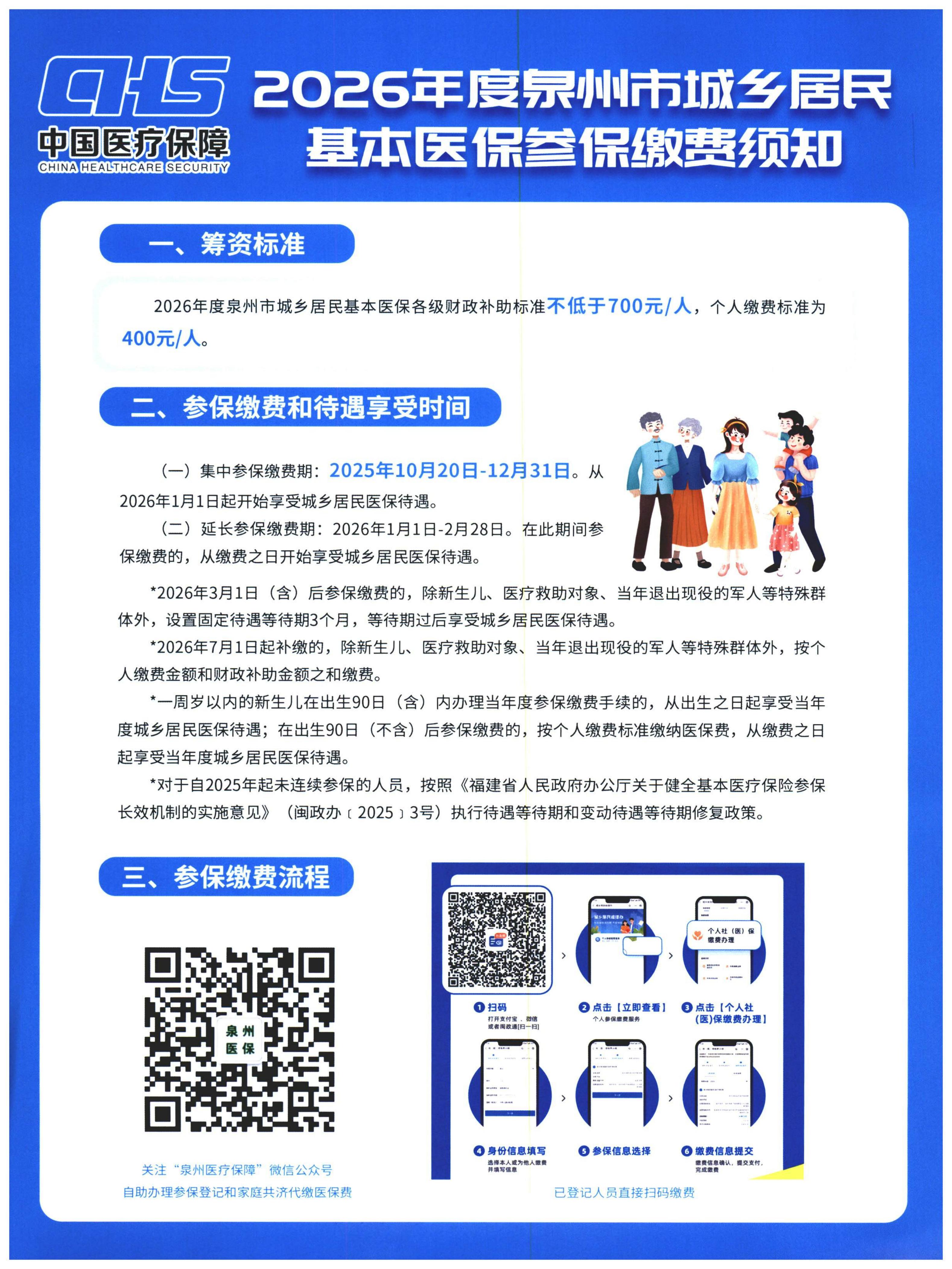 2026年度泉州市城乡居民医保参保缴费指南